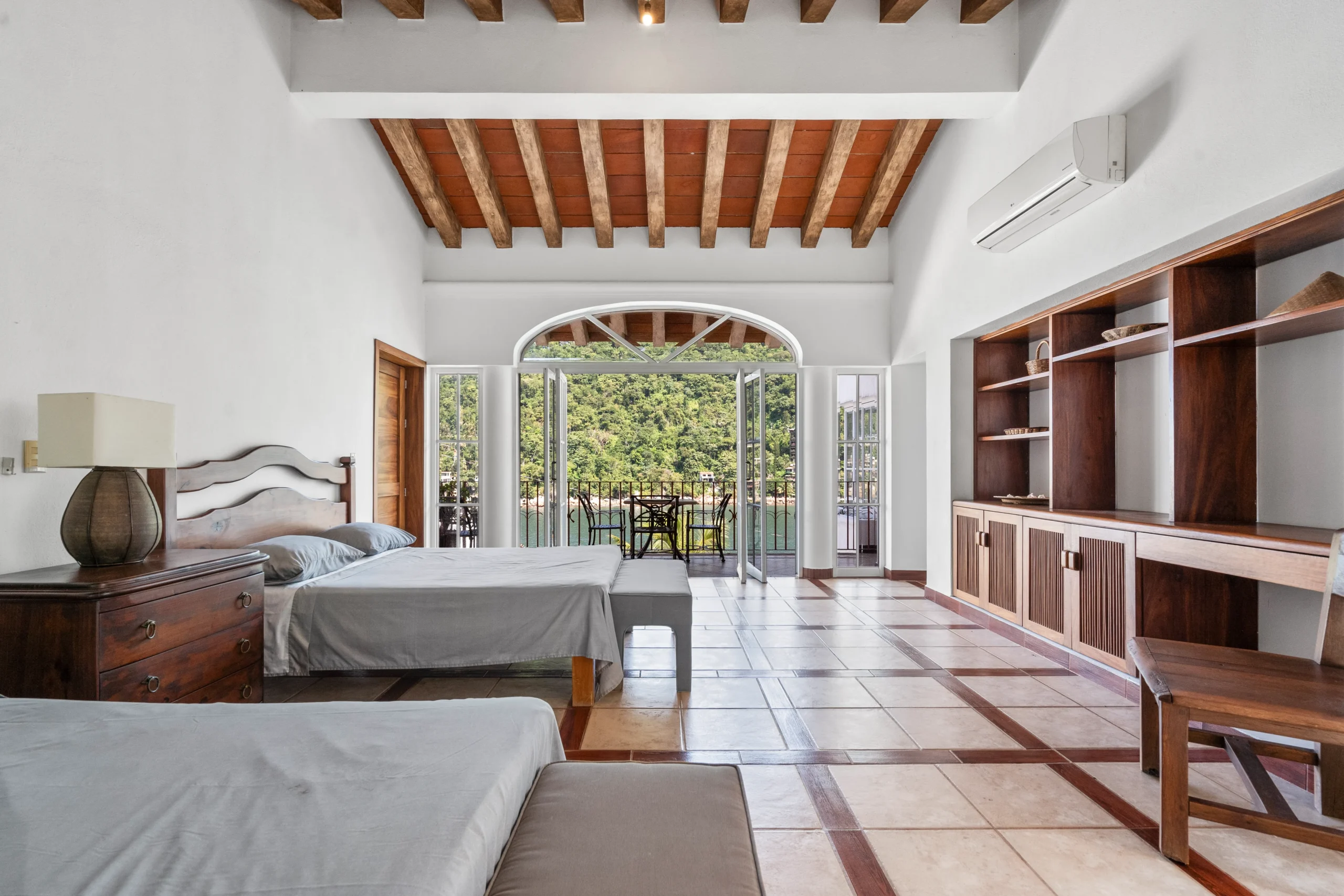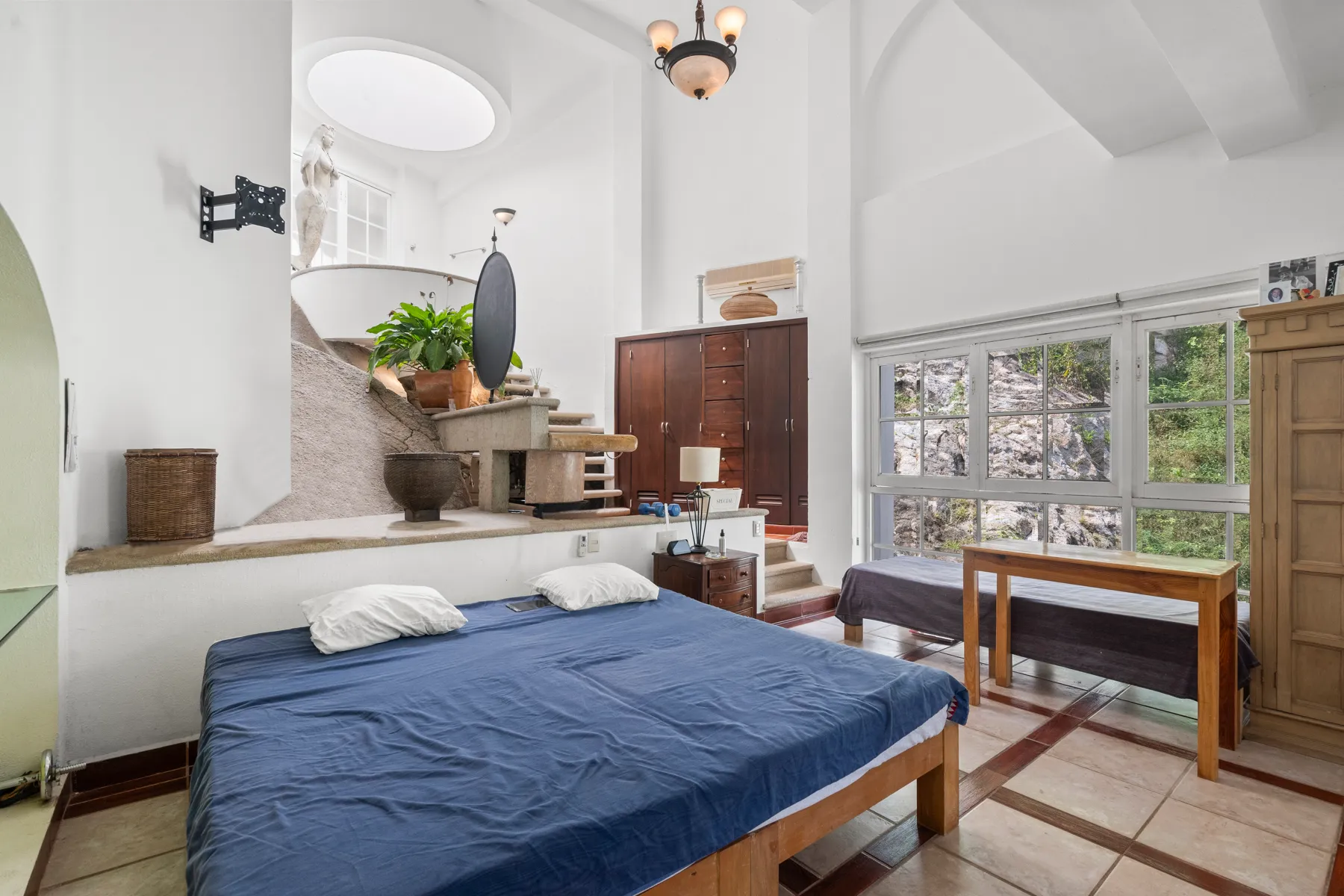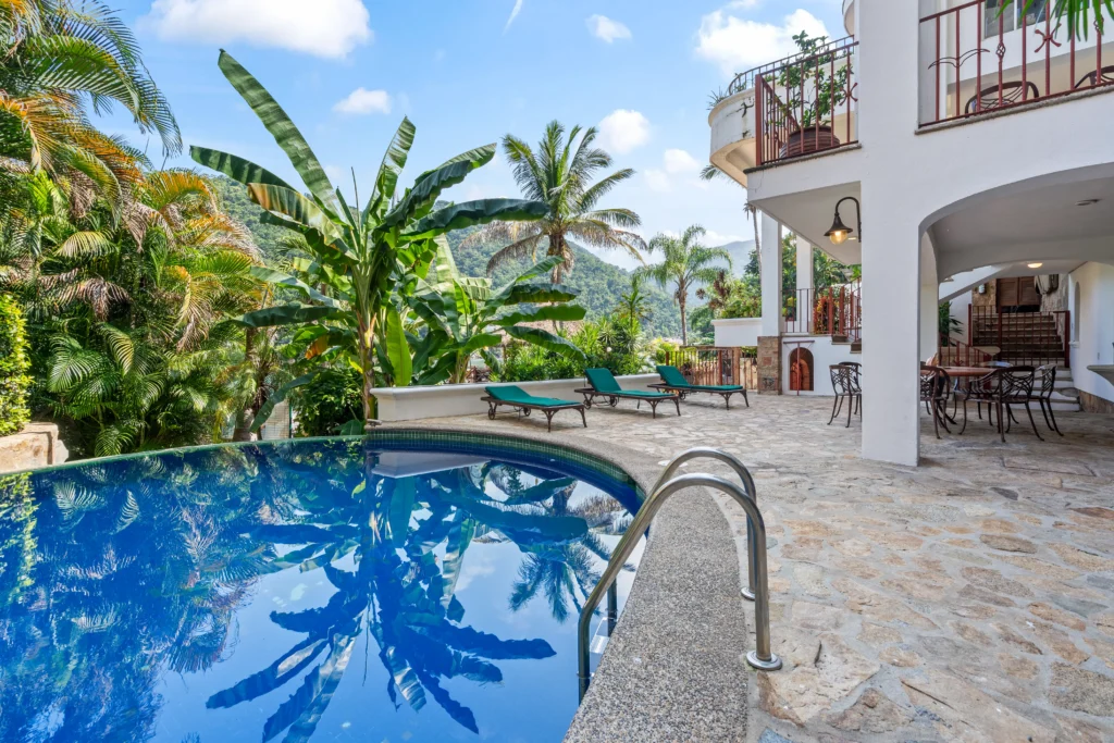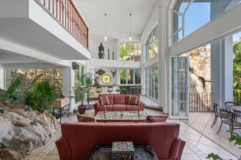 The Poolside Terrace level is an open-air sanctuary designed for relaxation and entertaining. The lush jungle foliage and sweeping views of the Sierra Madre mountains, form a seamless connection between architecture and nature capturing ocean glimpses and verdant hillside views.